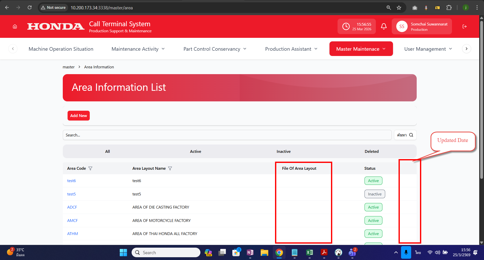 เอา field File Of Area Layout หน้า list ออก และเพิ่ม field update date หลัง field status