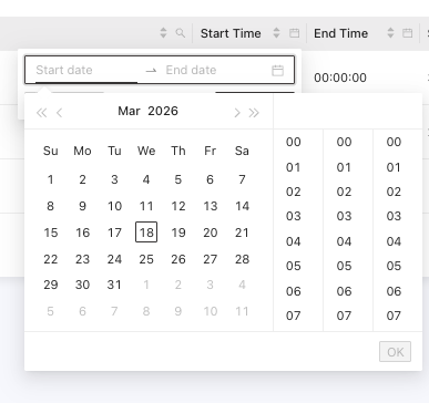 filter column Start Time/End Time ให้เป็น Range TimePicker