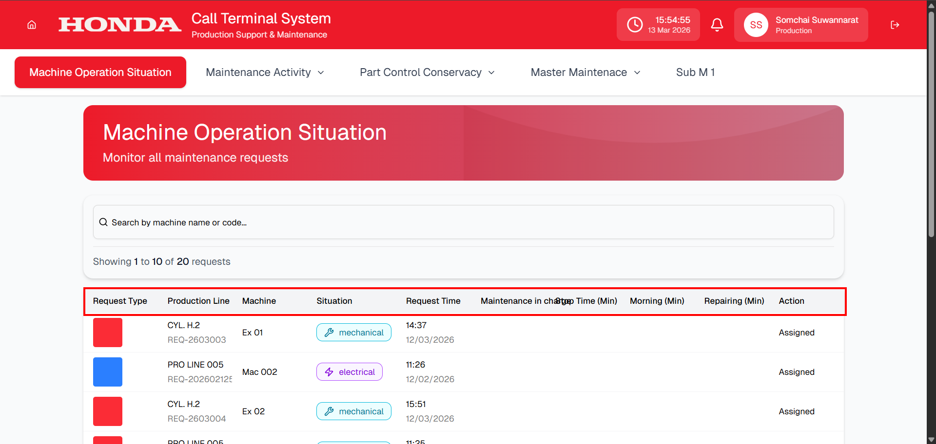 [Call monitor] Issue Machine Operation Situation: เพิ่ม Filter หัวข้อตาราง