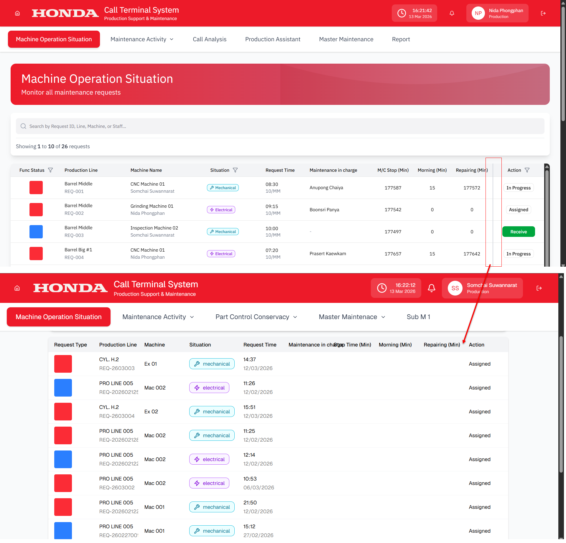 [Call monitor] Issue Machine Operation Situation: เพิ่มเส้นแบ่งระหว่าง culumn Repairing (Min) และ culumn Action ตาม design