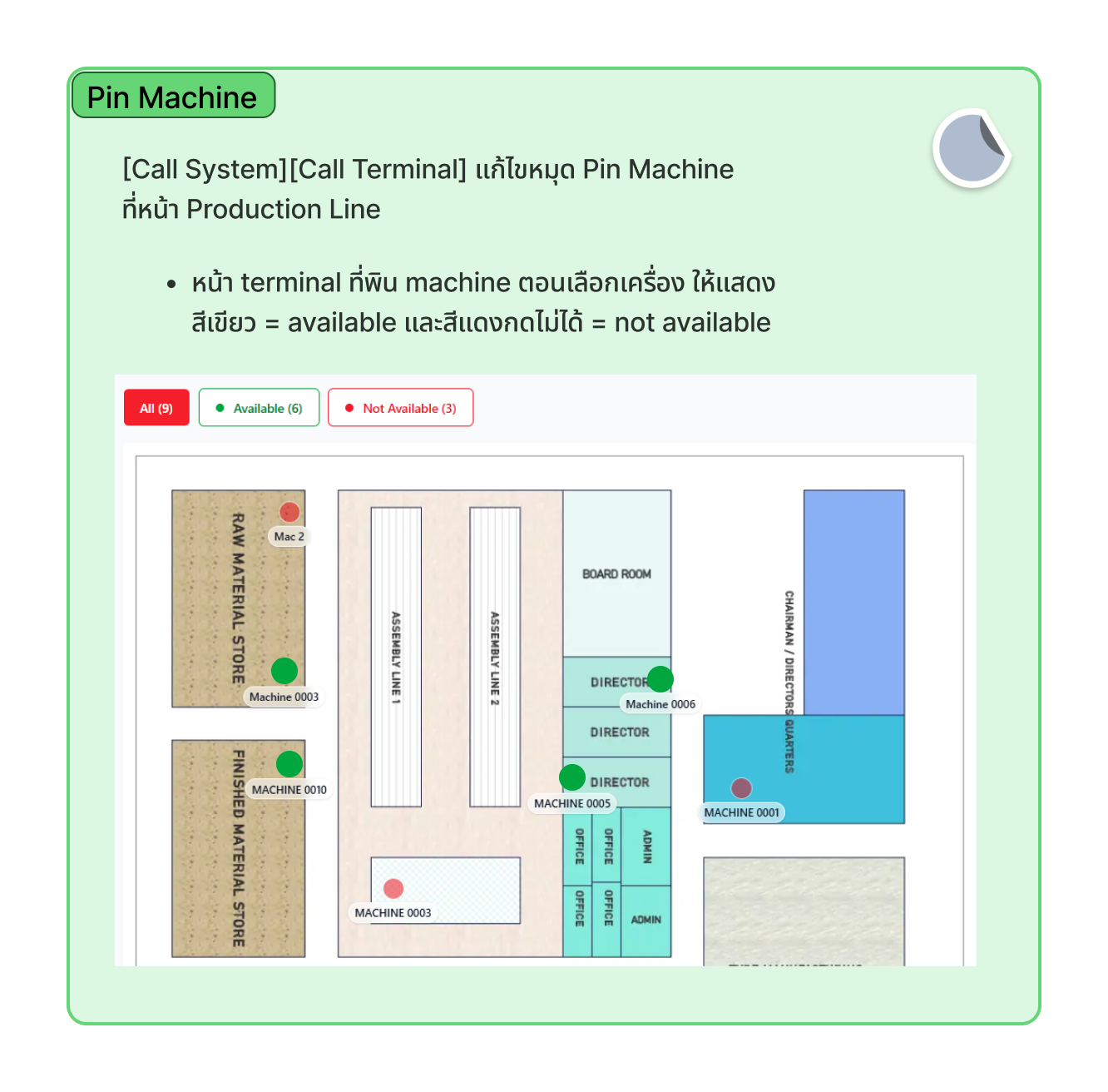 [Call System][Call Terminal] แก้ไขหมุด Pin Machine ที่หน้า Production Line