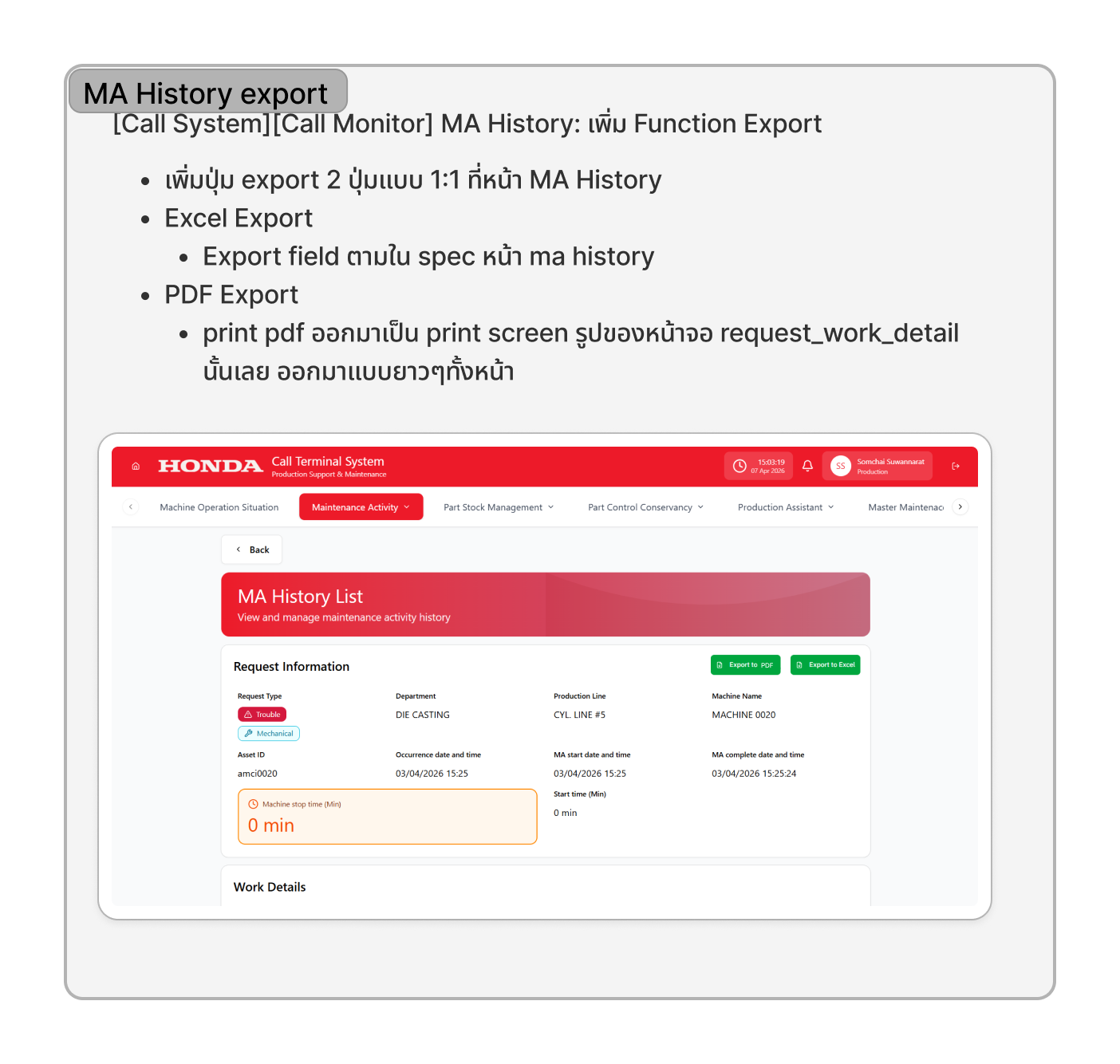 เพิ่มปุ่ม export 2 ปุ่มแบบ 1:1 ที่หน้า MA History