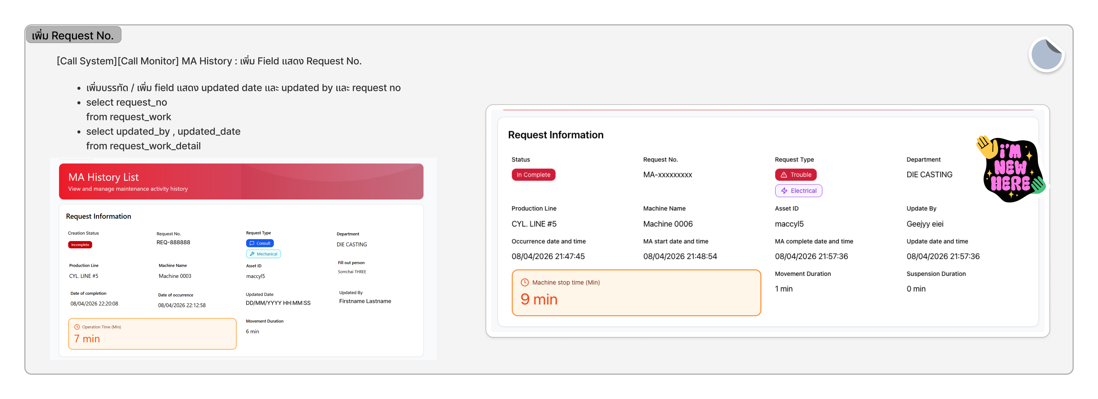 [Call System][Call Monitor] MA History : เพิ่ม Field แสดง Request No.